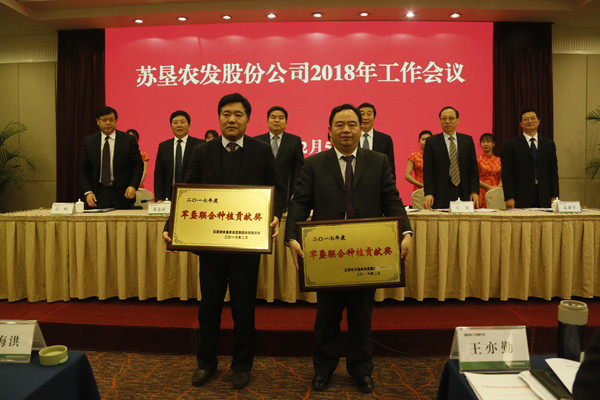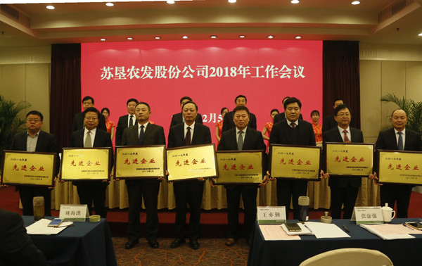會(huì)上隆重表彰了公司2017年度先進(jìn)企業(yè)和獲得效益立功獎(jiǎng)、突出貢獻(xiàn)獎(jiǎng)、拓展基地效益貢獻(xiàn)獎(jiǎng)、軍墾聯(lián)合種植貢獻(xiàn)獎(jiǎng)的單位,8家單位分別作了交流發(fā)言。公司分別與3家子公司簽訂了黨風(fēng)廉政建設(shè)責(zé)任狀、與各單位簽訂了安全生產(chǎn)責(zé)任狀。公司領(lǐng)導(dǎo)、各分子公司總經(jīng)理助理以上人員、農(nóng)科院院長(zhǎng)助理以上人員、總部各部室總經(jīng)理助理以上人員參加了會(huì)議。總部全體工作人員列席了會(huì)議。