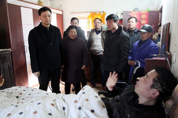 姜建友一行首先代表集團(tuán)公司黨委向農(nóng)場領(lǐng)導(dǎo)班子及廣大干部職工表示新春的問候和良好的祝愿。還在幾位場領(lǐng)導(dǎo)及相關(guān)部門和單位負(fù)責(zé)人的陪同下,重點(diǎn)走訪慰問了兩個貧困家庭,向他們送上了慰問金、慰問品特別是集團(tuán)公司和各級的溫情關(guān)愛和溫馨祝福。在孫謝居委會單身兄弟家庭范小八家,姜建友一行仔細(xì)察看并詢問了他家的生活、兄弟倆的身體及農(nóng)場采取的精準(zhǔn)幫扶措施落實(shí)等方面的情況,同時還針對白馬湖困難群體較多的實(shí)際,要求農(nóng)場各級領(lǐng)導(dǎo)在精準(zhǔn)幫扶上再出實(shí)招、再作努力,希望兄弟倆也要自強(qiáng)自立,早日過上美好生活。在六支居委會因病致盲的居民卞元翠家,姜建友一行熱心地與她拉起了家常,詳細(xì)詢問了她的身體情況和家庭生活情況,鼓勵她家要進(jìn)一步樹立起生活的信心,在各級組織的關(guān)愛幫助下,早日戰(zhàn)勝病魔和目前的困難。(張志成)
