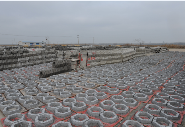 時間到了3月6日,四十六大隊場頭六角塊預制現場工人忙得熱火朝天,整個曬場上已經堆了一壟壟的六角塊或鋪設了剛下流水線的預制塊,雖然已經上了兩個班次,由于雇工熟練程度的提高和工作時間的延長,每個班次的日生產量已經達到1500-2000塊,但就是這樣,自六角塊開工生產以來,才完成了16萬塊,離預定目標還有34萬塊的缺口。對此,沈平的心中絲毫沒有輕松,澆鑄好的六角塊還要運下田鋪設,如果再碰上陰雨,他想都不敢想。