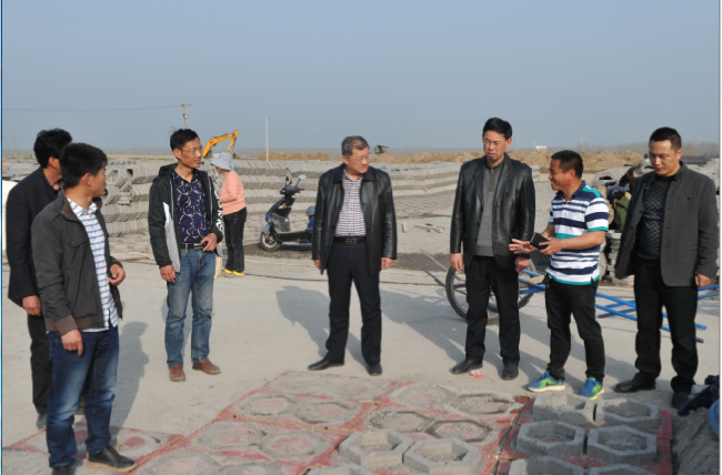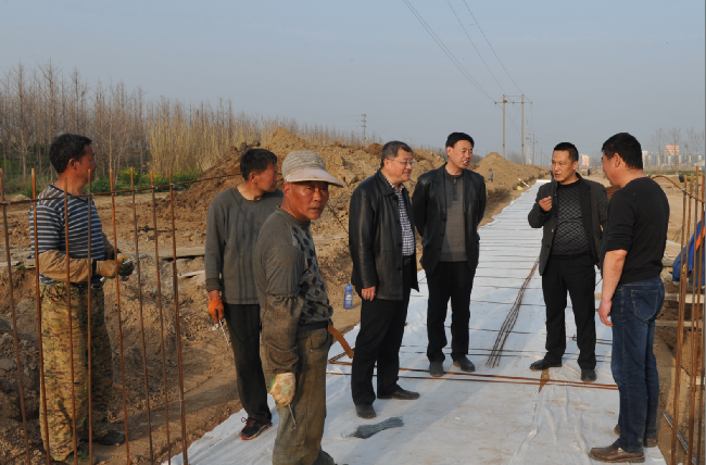 515分,當李衛東一行驅車來到農場神禾路旁的一支渠駁岸現場時,橋頭旁的10多名工人正在用水泥澆鑄駁岸碼頭和流水口。李衛東一行走到河旁查看和了解了水泥駁岸的生產進度和質量情況,并對隨行人員就農場下一步河長治的規劃和美麗淮海的建設情況,進行了探討。