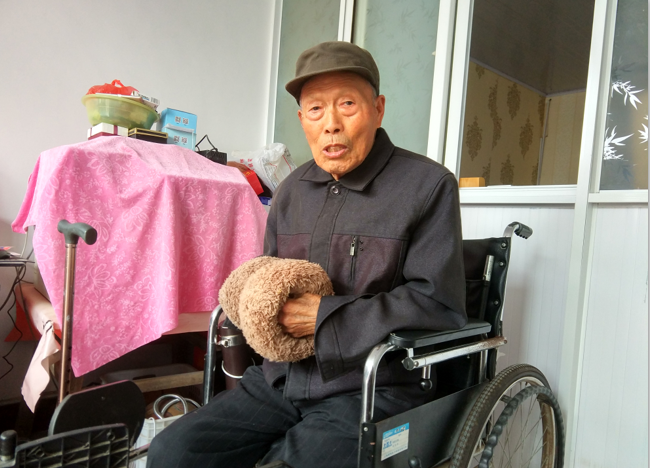 這名已經91歲高齡的老人名叫楊文才,是江蘇農墾淮海農場建國前的離休老干部,因為抗美援朝,1951年23歲的楊文才毅然報名參軍,后因戰局的扭轉,他從102師改編成農建四師,來到淮海農場屯墾戍邊。從1953年直到離休前,楊文才一直是單位的會計。現在坐著輪椅來到藤架下休息聊天是他每天的必修課。