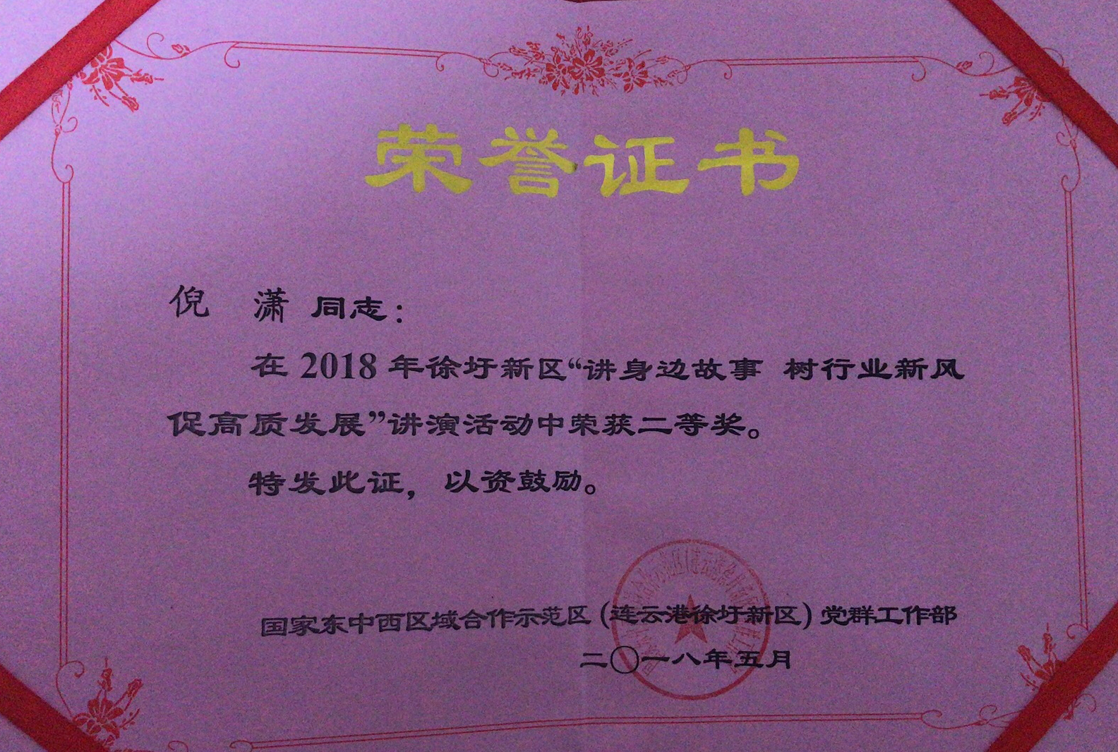 近日,徐圩新區(qū)舉辦“講身邊故事 樹行業(yè)新風 促高質(zhì)發(fā)展”職工主題講演活動,經(jīng)過激烈角逐,東辛社區(qū)倪瀟在比賽中脫穎而出,榮獲本次比賽二等獎。