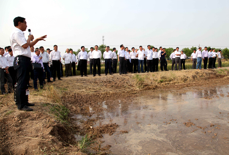 會后,胡兆輝、蘇志富率與會人員觀摩了黃海分公司農(nóng)業(yè)生產(chǎn),對黃海分公司農(nóng)機農(nóng)藝融合新技術的應用給予高度贊賞。