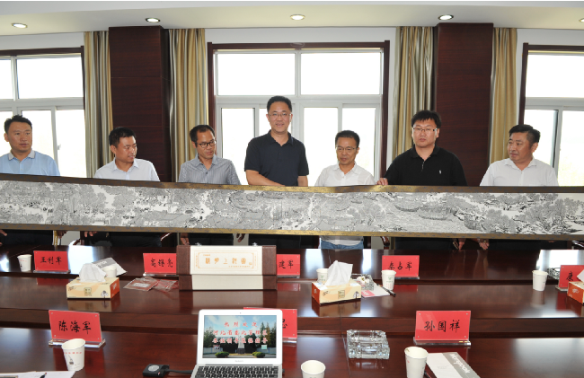 座談結束后,白建軍一行還向淮海農場有限公司贈送了一幅由管理區自行生產,并具有濃郁鄉土氣息的世界非物質文化遺產《清明上河圖》精美包裝剪紙