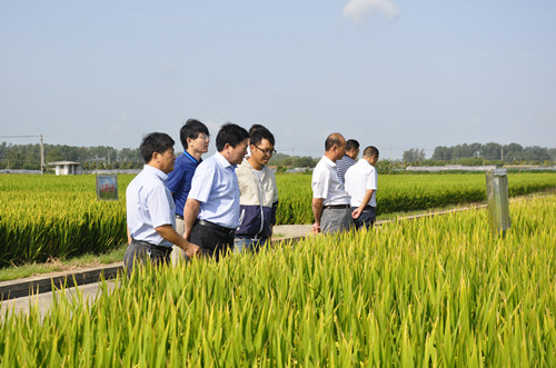 會議期間,蘇志富一行還深入到大華育種研究院淮安研究所的試驗田邊察看了華粳8號等水稻品種的長勢長相,聽取了相關工作人員的情況介紹,并針對水稻生產如何進一步提高產量、提高效益提出了要求。