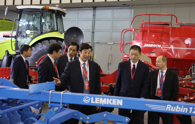 4月10日至12日,由江蘇省農業農村廳與中國國際貿易促進委員會江蘇省分會主辦、德國農業協會和江蘇農墾集團有限公司協辦的“第十屆江蘇國際農業機械展覽會”(AGMA CHINA 2019)在南京國際博覽中心舉行。10日上午,副省長郭元強、省農業農村廳廳長楊時云、省委農村工作領導小組副組長胥愛貴等領導,在集團公司黨委書記、董事長魏紅軍陪同下,視察了中德示范園展區。黃海農場公司黨委書記、蘇墾農發黃海分公司總經理、中德農業示范園中方主任賀在銳介紹情況。期間,集團公司總經理胡兆輝一行到示范園展區指導。