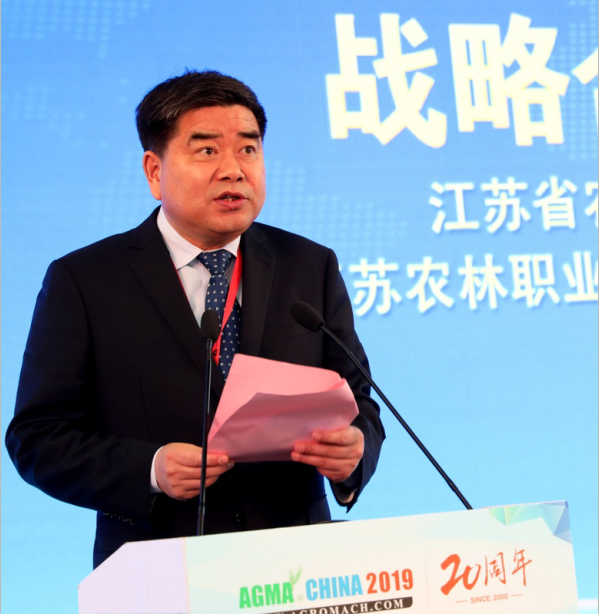 江蘇省農(nóng)業(yè)農(nóng)村廳副廳長(zhǎng)沈毅致辭,他在致辭中表達(dá)了省農(nóng)業(yè)農(nóng)村廳對(duì)江蘇農(nóng)墾創(chuàng)新農(nóng)業(yè)體制機(jī)制、大力開展農(nóng)業(yè)科技項(xiàng)目合作交流上的積極作為的由衷贊賞,對(duì)中德農(nóng)業(yè)示范園在農(nóng)業(yè)領(lǐng)域開展國(guó)際合作的示范標(biāo)桿作用的高度肯定。