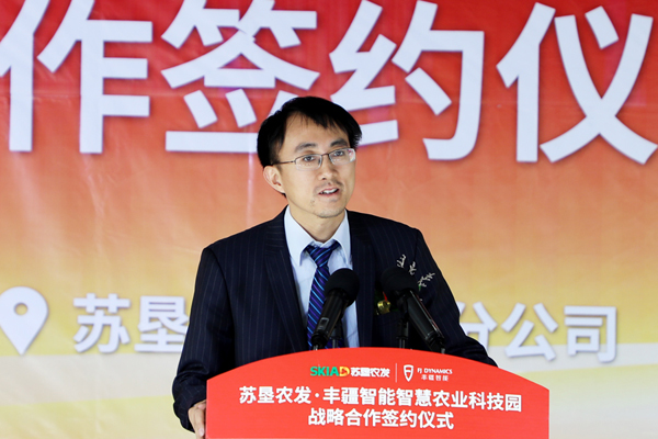 吳迪在講話中說,蘇墾農發對豐疆智能公司來說是一個非常重要的合作伙伴,只有與蘇墾農發這樣管理能力強、對農業有深刻理解的公司在一起,才能把智能農機做到一流水平。豐疆智能公司是技術領先的農機智能化公司,智能化產品齊全、技術先進。公司圍繞物流業、農業和工業領域,聚焦新能源、人工智能和先進制造創新開發,努力打造核心技術具有一流水平的高科技企業。