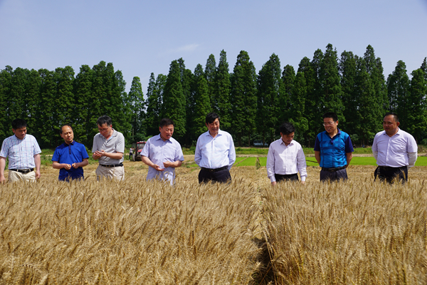 在"華麥5號"高產創建示范田,胡兆輝對該品種在新洋測產733.7公斤每畝再次刷新江蘇省小麥單產歷史最高紀錄給予了高度贊賞。他指出,今年小麥穩產高產形勢好,后期要時刻關注突發性天氣變化,做好應對防范保障措施,力保收割沖刺階段平穩高效過渡,確保"三夏"各項工作有序開展。