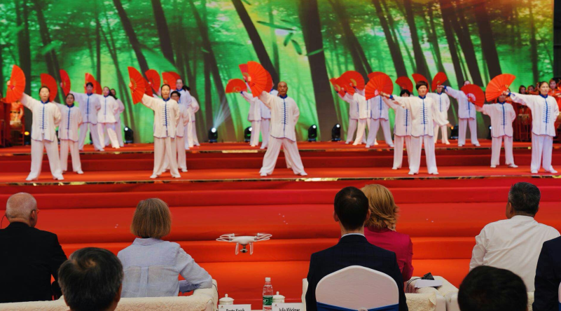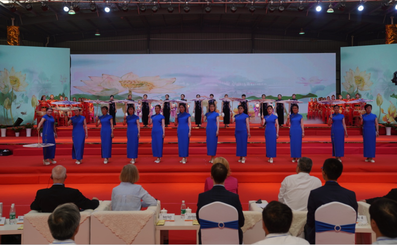開幕式過后,與會領導和嘉賓共同觀看了“蘇北明珠·美麗黃海”文化活動展演。龍鼓、太極、功夫扇、旗袍秀組合表演《激情6月》、少兒足球操表演《我健康 我快樂》、古箏、古琴、茶藝、古典舞蹈表演《盛世琴韻》,示范園內歡歌笑語、載歌載舞,見證了第五屆田間日的成功舉辦,用文化盛宴精彩展現了“蘇北明珠·美麗黃海”。