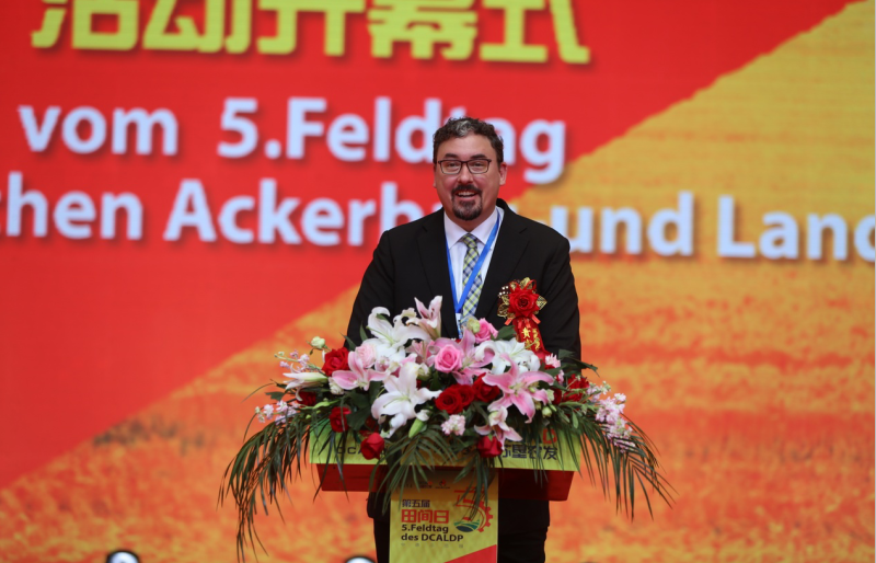 王宏前代表農業農村部對中德示范園第五屆“田間日”活動的成功舉辦表示熱烈祝賀!他說,中德農業合作是中德雙邊合作的重要領域,在兩國領導人的共識引導下,2015年3月,作為中德農業雙邊合作核心平臺的中德農業中心啟動運行,中德農業示范園是中德農業中心框架下,兩國深化農業領域合作的重要項目。4年以來,在雙方的共同努力下,示范園區在創新耕作模式、改善土壤活力、提高種植效益、強化科技培訓等方面積累了寶貴的合作經驗,取得了豐碩的合作成果,示范園對實踐與推廣環境友好、健康土壤的生態環境和管理技術,推動農業綠色發展方面作出了良好示范,可圈可點、可喜可賀。