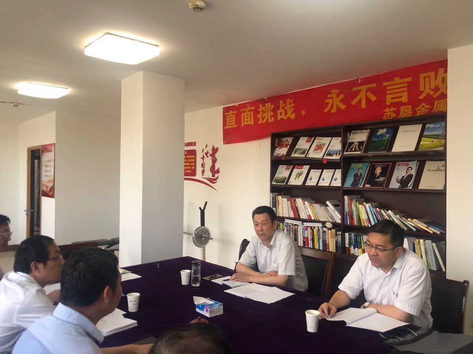 9月18日上午,集團公司黨委副書記姚準明、集團公司黨委委員、總經理助理、工會主席楊義林到金屬公司,就愛心公益活動的開展情況進行調研并予以指導,蘇墾金屬領導班子出席了會議。