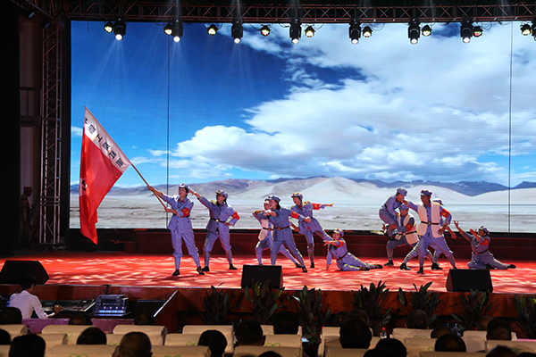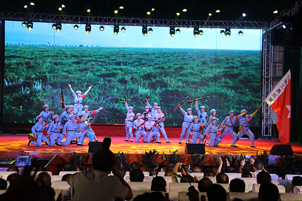新洋農(nóng)場公司的情景劇《紅軍不怕遠征難》和濱淮農(nóng)場公司的歌舞劇《長征組歌》,以音樂、舞蹈、畫面相結(jié)合,歌頌了中國紅軍的偉大長征精神,表現(xiàn)了人民軍隊在革命年代為建設(shè)新中國流血犧牲、歷盡艱難險阻的感人場面。