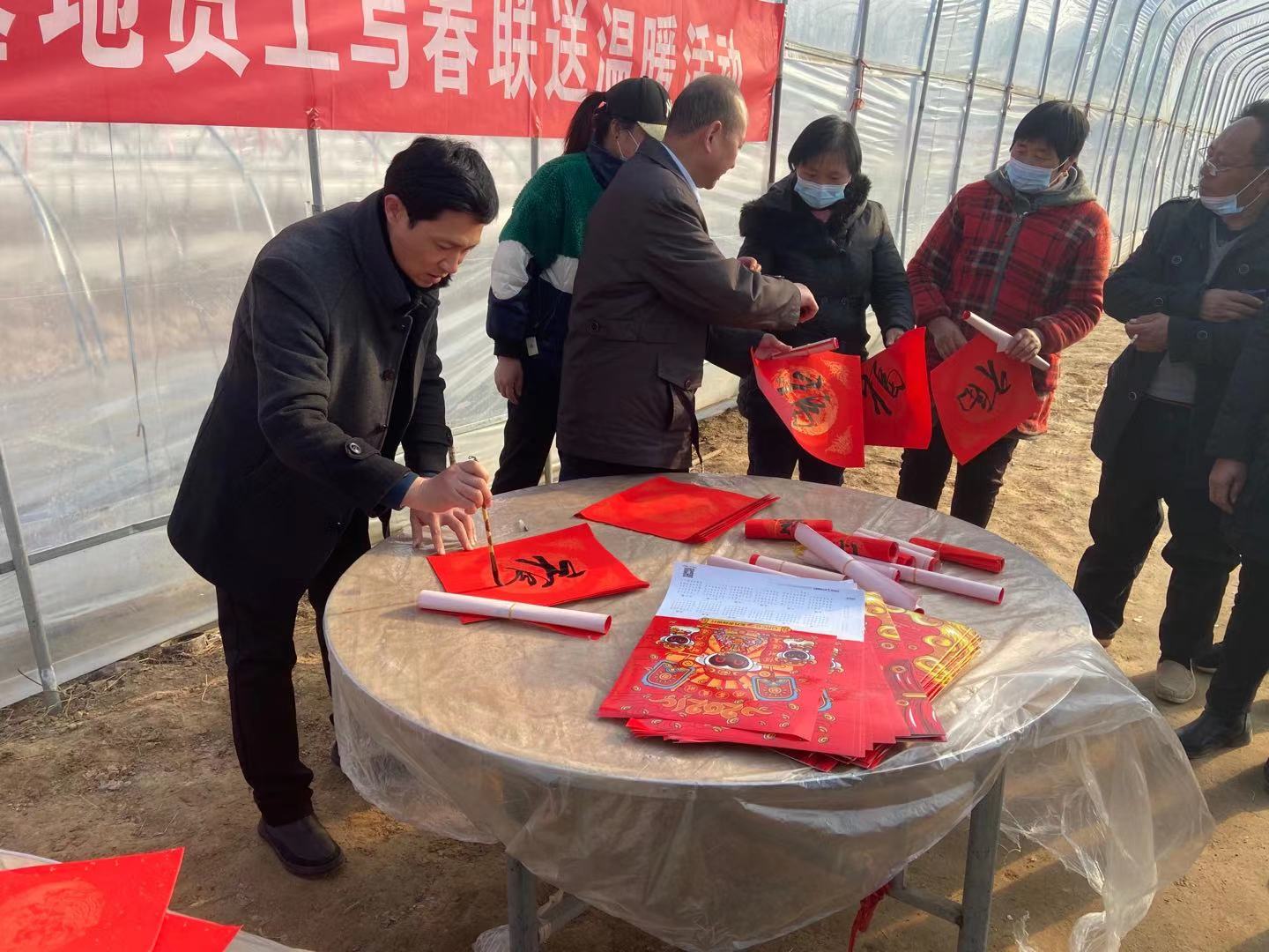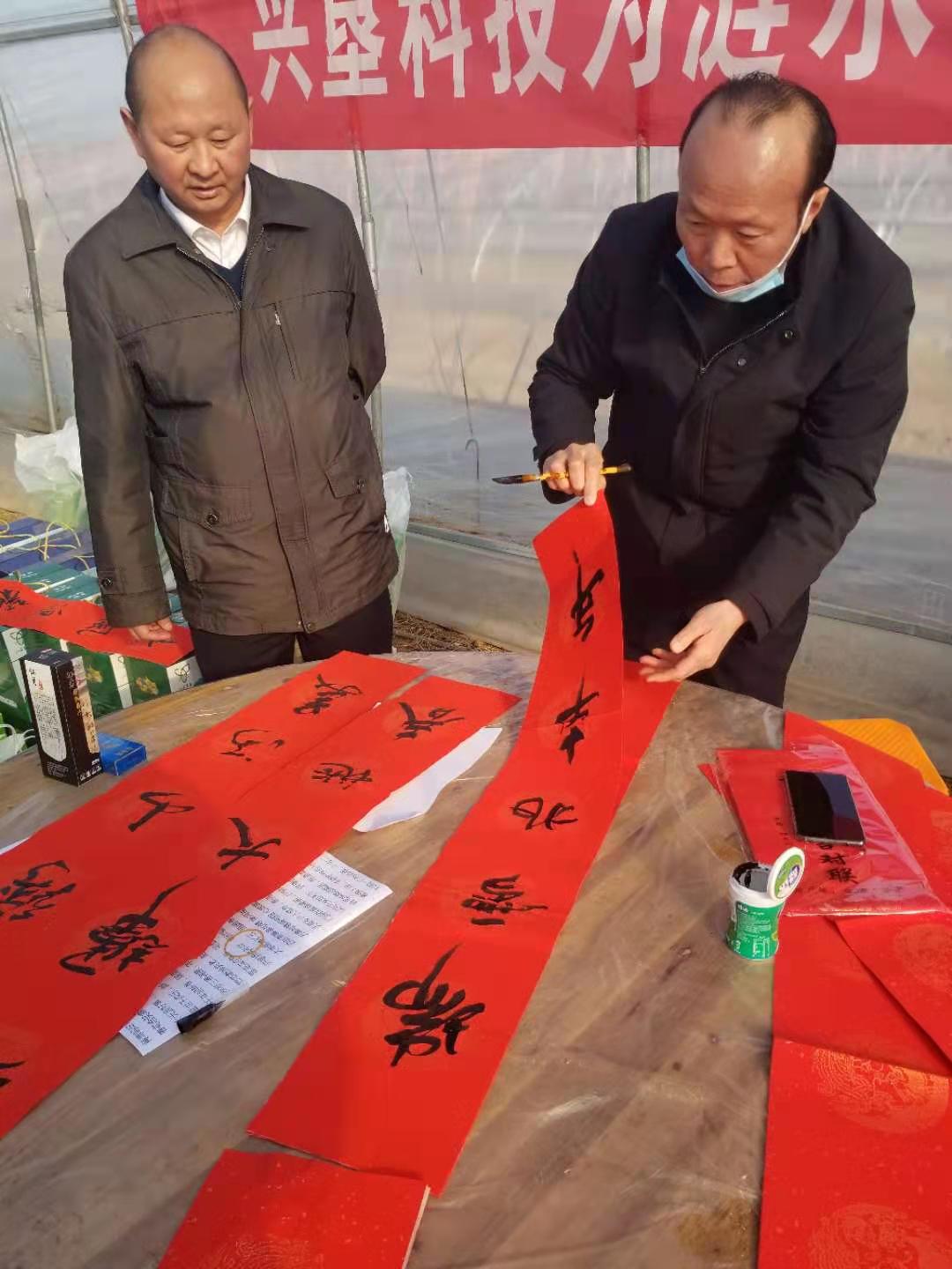 春節(jié)將至,幫扶情深。2021年2月4日下午,江蘇農(nóng)墾興墾農(nóng)業(yè)科技有限公司董事長、總經(jīng)理陳叢林、副總經(jīng)理?xiàng)钣濉ⅠR傳武一行到漣水產(chǎn)業(yè)幫扶基地開展寫春聯(lián)送溫暖慰問活動(dòng),為基地村民送上組織的關(guān)懷和新年的祝福。漣水縣林場村支部書記陳法寶一同參加慰問活動(dòng)。