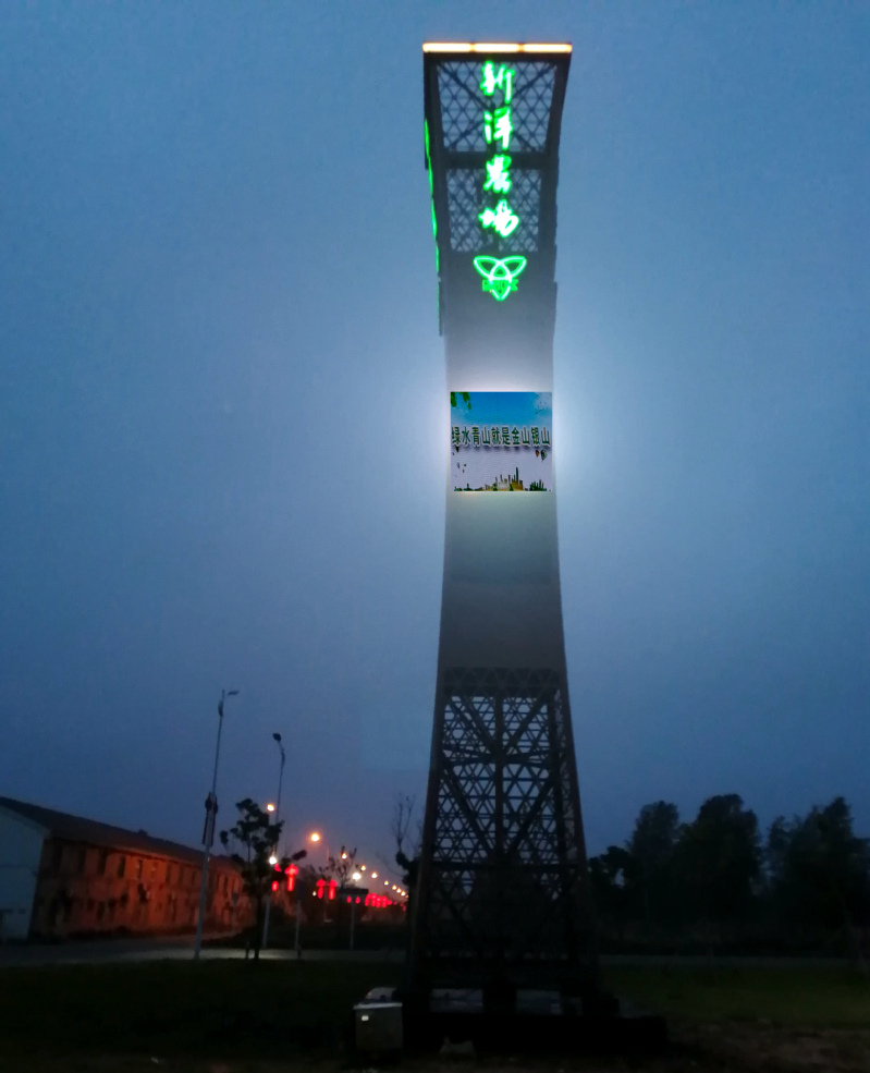 “小蠻腰”靜靜地屹立在射鹽公路邊,南來北往的駕駛員和乘客透過車窗就能一目了然看到“新洋農場”四個大字和閃閃發亮的公益廣告,不但讓路人對“新洋農場”有著深刻的印象,而且對綠色環保理念的公益廣告有更深刻的記憶。