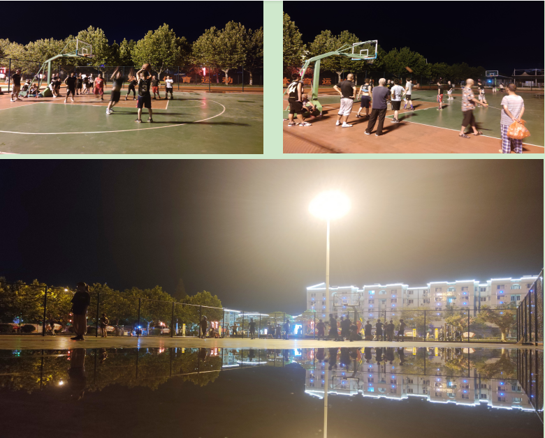 盛夏時(shí)節(jié),雖然白天的太陽(yáng)灸烤似火,但在高溫的天氣過(guò)后的四五點(diǎn)鐘,淮海職工休閑體育運(yùn)動(dòng)廣場(chǎng)上的籃球場(chǎng)上便開(kāi)始活躍起來(lái)。特別是到傍晚時(shí)分和夜間九點(diǎn)多鐘,籃球場(chǎng)上始終洋溢著熱鬧的氣氛。大家在燈光下,許多籃球愛(ài)好者們,便相約來(lái)到封閉式的籃球場(chǎng)上,時(shí)而進(jìn)場(chǎng)熱身、時(shí)而組隊(duì)比賽。在比賽間隙,我們甚至能看到有頭10個(gè)籃球在同時(shí)滾動(dòng)飛傳。籃球,作為淮海人喜歡的一個(gè)體育運(yùn)動(dòng),正成為職工居民喜愛(ài)的運(yùn)動(dòng)項(xiàng)目之一。
