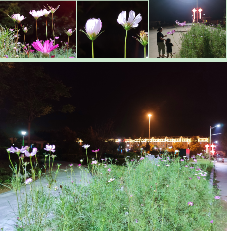在淮海農(nóng)場(chǎng)醫(yī)院門前的健康路上,生長(zhǎng)著約幾十米長(zhǎng)的秋英花,白天盡顯嫵媚,成為健康路途中的一道別樣風(fēng)景,而到了夜晚在燈光的映襯下,秋英也就更具特色,像是一朵朵唯美的風(fēng)景,讓人流連中又不忍去碰它,生怕觸動(dòng)它那嬌嫩的肌膚。這些花朵與農(nóng)場(chǎng)大面積栽種的綠植不同,因?yàn)樗遣荼局参铮簿统蔀榱宿r(nóng)場(chǎng)綠化家族中的新一景,吸引著人們駐足觀看,也讓美麗淮海增添了一處新的觀光地帶。