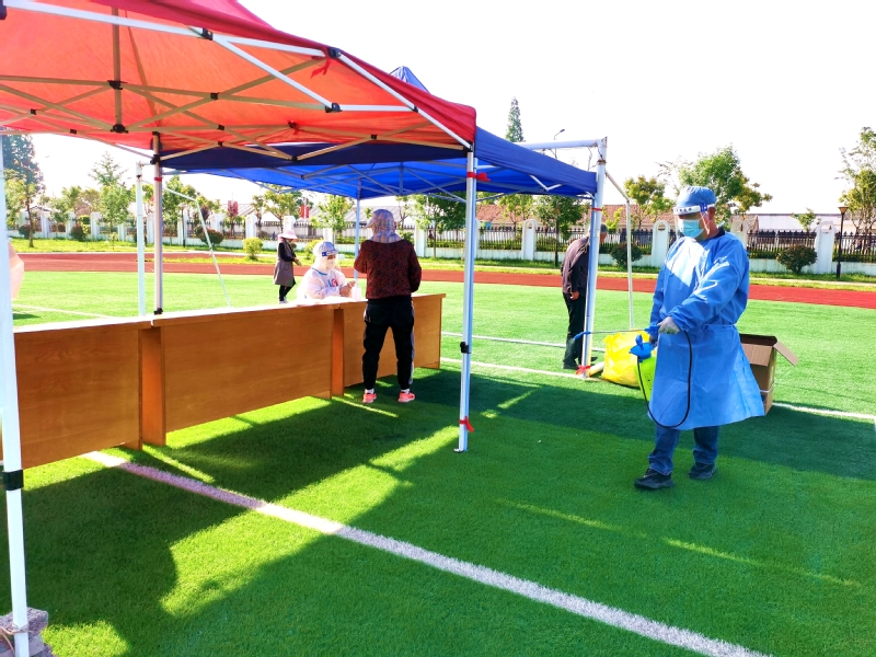 我在崗,您省心。“能做一點是一點,疫情防控是我們大家共同的事。”姜明亮是社區機關黨支部一名預備黨員,當他得知5月3日夜班值班人員臨時有事便主動請纓,從晚上八點到次日早晨八點,他把承諾當做責任來踐行。5月4日農場組織全員核酸檢測,他一掃夜班值守的疲憊,直奔迎湖健身廣場核酸采樣點,背上消毒機進行現場環境消殺。劉圩小學采樣點,只見一位“小藍”手拿擴音喇叭對著居民喊話:“病毒無情人有情,健康連著你我他,請大家保持一米線?!苯涍^仔細辨認大家才認出她是社區財務劉玉?!捌綍r聲音不大,維持秩序時聲音倒不小。”大家紛紛為她點贊?!澳茫埑鍪旧矸菪畔ⅰ!比謭龉ぷ魅藛T劉昕身穿白色防護服,正忙著采集身份信息。朝陽下,汗水浸透了衣衫、曬紅了臉頰,他卻沒有一聲抱怨。當天他共采集490個信息,這也是他連續五次完成三分場采集點數據采集任務。