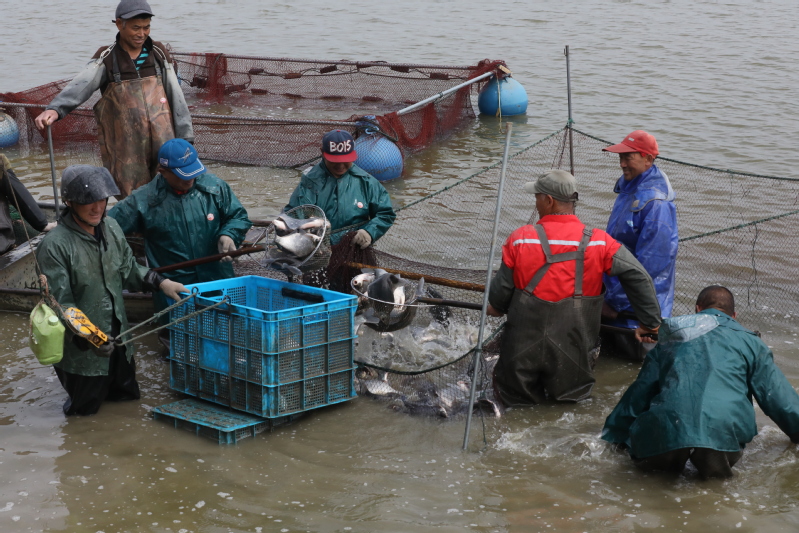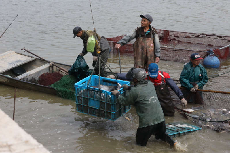 513日,寶應(yīng)湖農(nóng)場劉圩養(yǎng)殖場養(yǎng)殖戶楊金林正在起捕塘口鳊魚。