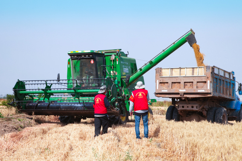 三夏”大忙期間時間緊、任務重,隨著小麥陸續成熟云臺未雨綢繆,黨員干部、管理人員、青年團員等組成“三夏”生產志愿服務隊,全部下沉至各大隊和生產區,通過采取有力管理措施,科學調配人員和農機力量,解決“三夏”生產問題,有效保障三夏”農業生產工作。在田間地頭,志愿者們正在指揮著收割機,安排組織統一收割,盡管烈日當頭、汗流浹背,但大家投身“三夏”的熱情卻依然不減,確保應收盡收、顆粒歸倉;在各大隊曬場,黨員志愿者們充分發揮先鋒模范作用,大家搶抓天氣晴好有利時機,拿起工具在曬場中揚麥,并根據收割進度、曬場壓力,制定了一套科學完整的烘干入庫方案,保障烘干工作“不斷環”,“三夏”農忙“不掉鏈”;“三夏”期間安全生產最重要,志愿服務隊化身安全員,提前對機架人員進行安全培訓,持續對麥田進行巡邏排險,消除各類隱患,并分成4組小分隊,夜間值班值守對秸稈禁燒情況進行檢查,保證“不點一把火,不冒一股煙”,確保安全生產無事故。