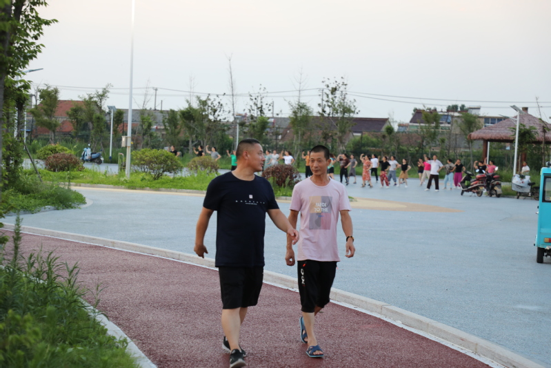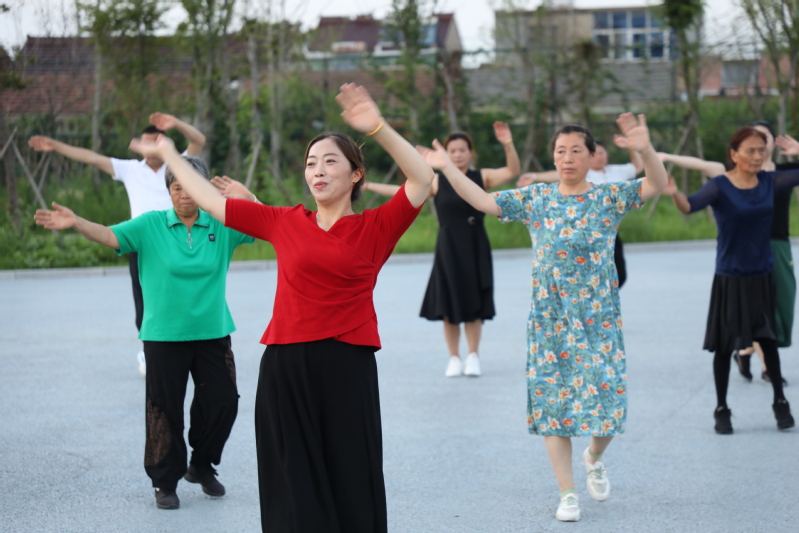 廣場舞臺上的愜意。每天傍晚6:30分,文化廣場都會傳出一陣陣歡快的音樂聲,伴隨著音樂的節(jié)奏,近百人舞動的身姿吸引著不少人跟著跳動比劃。自文化廣場建成后,農(nóng)場公司特地在百姓大舞臺廣場安裝了接電裝置,為職工居民跳廣場舞提供方便,舞臺南側(cè)的高桿燈光明亮,舞者們的臉上洋溢著幸福的微笑。廣場建成后,退休職工黃淑英主動當起了廣場舞的老師,每天領(lǐng)著大家一起跳操跳舞健身,一支百余人的廣場舞隊每天活躍在文化廣場,帶動了更多的職工居民加入到跳舞健身的行列。黃淑英說:每晚跳舞健身后的大汗淋漓舒服極了,不僅使全身都得到了活動和放松,增強了體質(zhì),還增進了大家之間的感情。