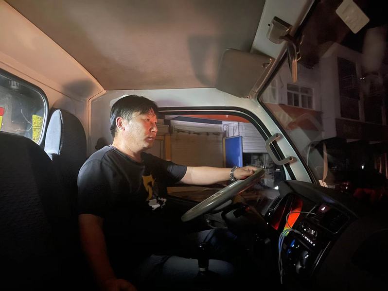 一個(gè)點(diǎn)一個(gè)點(diǎn)跑,一桶一桶裝,一車一車卸。戴玉剛對(duì)每個(gè)清運(yùn)點(diǎn)的位置熟悉得不能再熟悉,一天作業(yè)下來(lái)能跑40多公里。當(dāng)車?yán)锢幚硗戤叄麄冇珠_始洗車刷車……等到都弄干凈了才回家吃點(diǎn)東西,再睡上一覺。