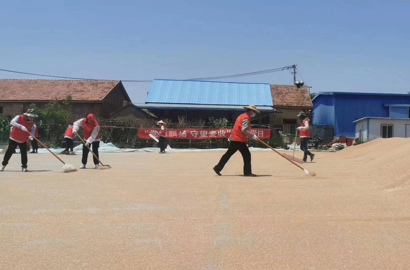 面對(duì)6月11日即將來臨的降雨天氣,東辛緊急吹響雨前顆粒歸倉“集結(jié)號(hào)”。各黨支部充分發(fā)揮戰(zhàn)斗堡壘作用,與掛鉤生產(chǎn)區(qū)聯(lián)合開展“黨旗飄揚(yáng) 守望麥?zhǔn)铡敝黝}黨日活動(dòng),把黨支部搬到田間地頭,讓黨旗在田間飄揚(yáng)。黨員佩戴黨徽,亮出身份做表率,走入晾曬場(chǎng),用實(shí)際行動(dòng)解決搶時(shí)收割、烘干晾曬等實(shí)際困難,“三夏”火熱實(shí)踐成為了開展主題教育的生動(dòng)“課堂”和實(shí)踐“基地”。