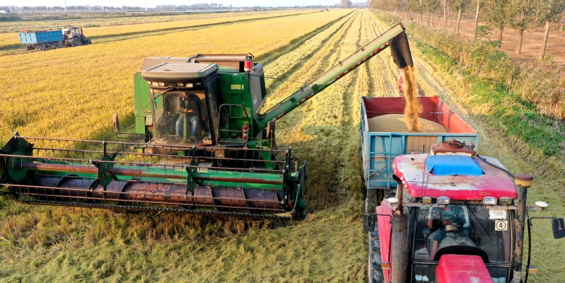 10月24日,江蘇農(nóng)墾黃海農(nóng)場11萬畝水稻迎來豐收。現(xiàn)場收割機(jī)的隆隆轟鳴,糧食運(yùn)輸車輛來回穿梭,確保水稻應(yīng)收盡收、機(jī)收減損、顆粒歸倉。