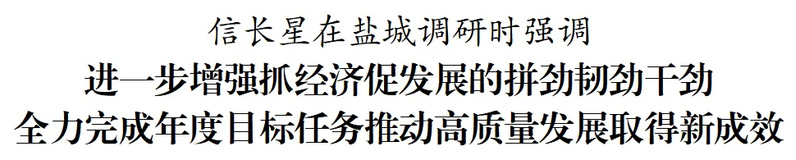 10月28日,省委書記信長星到鹽城市鹽都區(qū)、東臺市調(diào)研。他強調(diào),四季度是全年決勝階段,要深入學習貫徹習近平總書記重要講話精神,錨定年度目標任務,堅定信心、把握機遇,進一步增強抓經(jīng)濟、促發(fā)展的拼勁、韌勁、干勁,推動高質(zhì)量發(fā)展取得新成效,努力為全省發(fā)展大局貢獻更大力量。