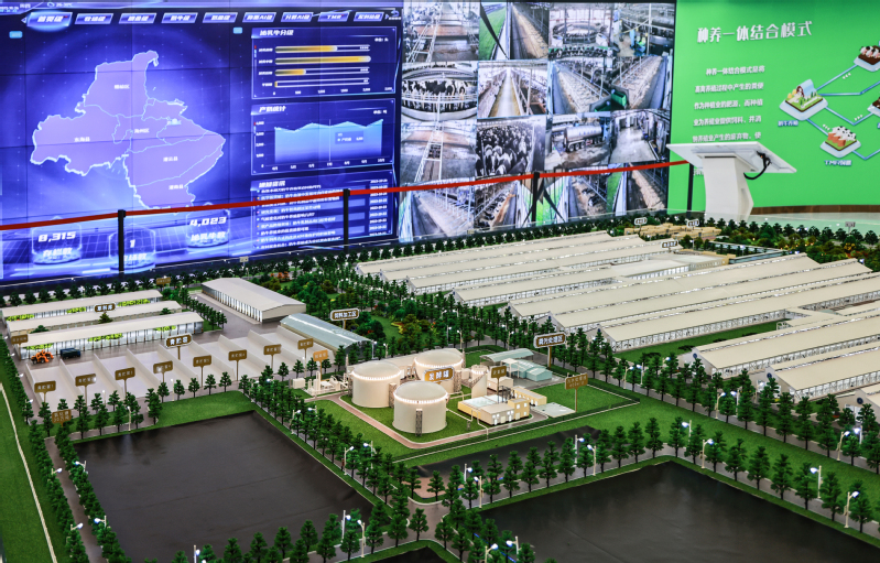 生態(tài)化發(fā)展加速轉型。牧場智慧生態(tài)系統(tǒng)中,污水循環(huán)管理設備包含牧場污水管路3D圖與污水監(jiān)測點位信息,做到實時監(jiān)測牧場污水指標,并將數(shù)據(jù)同步上傳至環(huán)保局,確保牧場水質監(jiān)管到位。沼氣發(fā)電系統(tǒng)將標準化工藝處理糞污產(chǎn)生的沼氣,用于發(fā)電后接入國家電網(wǎng),沼液利用后的沼渣作為奶牛牛床墊料的生產(chǎn)原料,不僅成本低,更大大降低了養(yǎng)殖風險。同時在場區(qū)配備廢氣檢測設備監(jiān)測養(yǎng)殖氣體環(huán)境,配備消防監(jiān)控設備監(jiān)測飼草區(qū)與沼氣發(fā)電區(qū)域煙火狀況。智能生態(tài)系統(tǒng)采取糞污固體發(fā)酵、沼氣烘干回床、沼液還田方式,實現(xiàn)“變廢為寶”。對牧場糞污發(fā)酵后的液位進行采集,經(jīng)過無害化處理后的沼液通過預設專用管道,在卷盤式噴灌機的運轉下自動噴灑在專屬消納用地的田間作物上,形成種養(yǎng)一體循環(huán),有效提高了糞污綜合利用水平。
