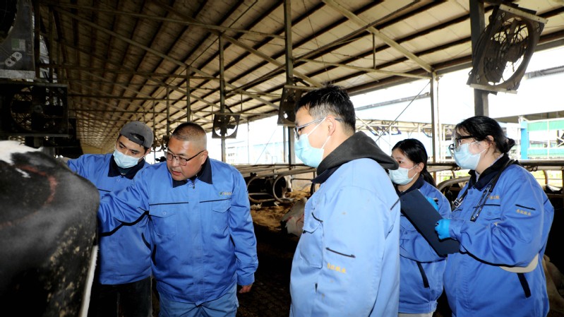 東旺奶牛公司生態(tài)養(yǎng)殖示范場存欄奶牛4800余頭,日常的奶牛管護、產(chǎn)后護理、轉(zhuǎn)群分群及病牛治療等工作任務十分繁重,獸醫(yī)組嚴格遵循“日巡查+周例會+月巡診”的工作機制,通過巡棚查看、巡診交流,全面了解掌握牛只的健康與成長狀況,做到有檢查、有治療、有回診,保障疫病防控和奶產(chǎn)品安全供給。“每個月,周主管都會定期帶我們進行巡診,現(xiàn)場診斷指導,我們的業(yè)務水平有了明顯提升,工作起來也更得心應手了。”獸醫(yī)組工作人員楊華說。東旺奶牛公司始終堅持人才強企理念,通過師帶徒、老帶新和技術(shù)培訓、技術(shù)交流等形式,不斷提升獸醫(yī)人員專業(yè)技能水平,奶牛乳房炎、腸炎、蹄病等疾病發(fā)生率有效降低,在牧場提單產(chǎn)、降成本、增成效方面發(fā)揮出積極作用,助力東辛畜牧業(yè)高質(zhì)量發(fā)展。