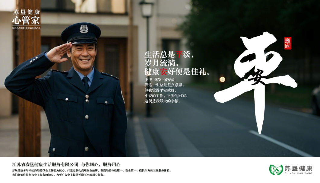 蘇墾健康擁有專業安保團隊,所有保安人員均經過嚴格培訓與篩選,具備良好身體素質與應急處理能力。通過 24 小時不間斷巡邏,并借助智能化監控系統,對服務區域進行全方位覆蓋,及時發現并排除各類安全隱患,為業主打造安而無危,規而有序,舒而合宜的環境。