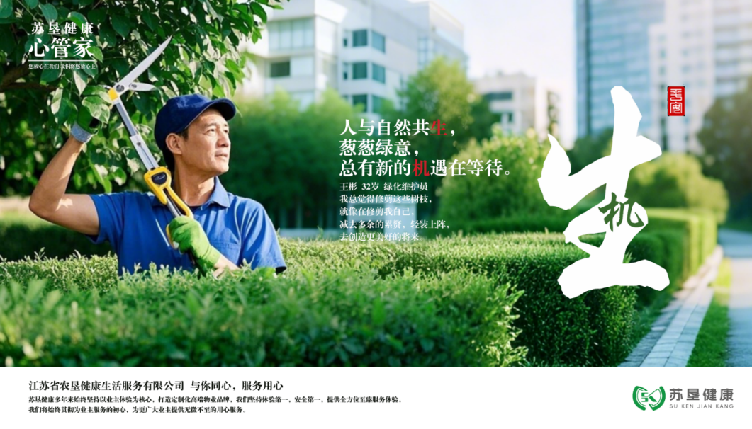 蘇墾健康擁有一支 800 余人的物業管理服務團隊,其中中高級職稱、經營管理、技術骨干80多人,具備豐富的行業經驗與專業技能,能夠為業主單位提供全方位、高品質、專業化的后勤綜合管理服務,服務內容涵蓋安全保衛、衛生保潔、綠化養護、會務接待、展廳解說、工程維修等服務內容。