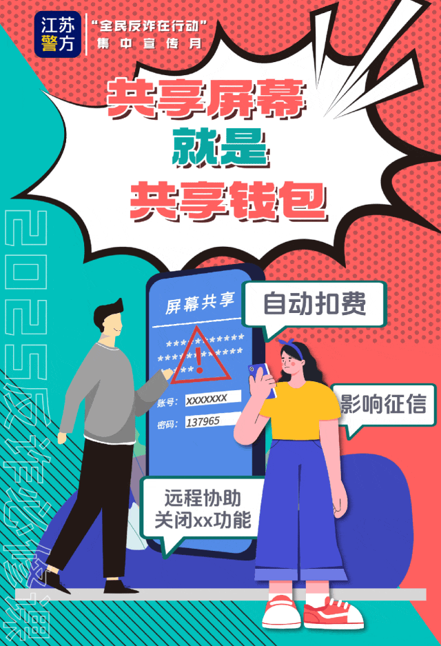 劃重點:騙子以自動扣費、影響征信等為由,聲稱需要關閉某項服務,并可以通過共享屏幕來“手把手”教學。但事實上,一旦共享屏幕,就等于共享了所有信息,你的驗證碼、密碼都將在對方的屏幕上一覽無遺。