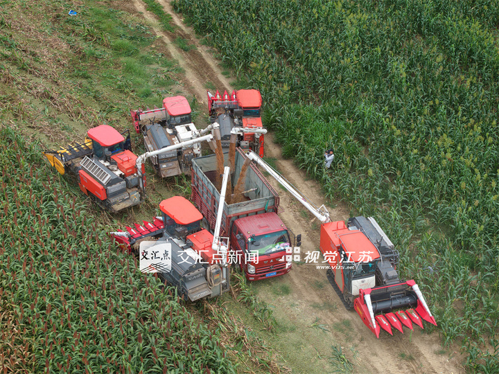 9月21日,江蘇農墾江心沙農場位于金壇長蕩湖和錢資湖畔外拓基地的8000余畝紅高粱全面開鐮收割。許叢軍 袁偉   攝 視覺江蘇網供圖