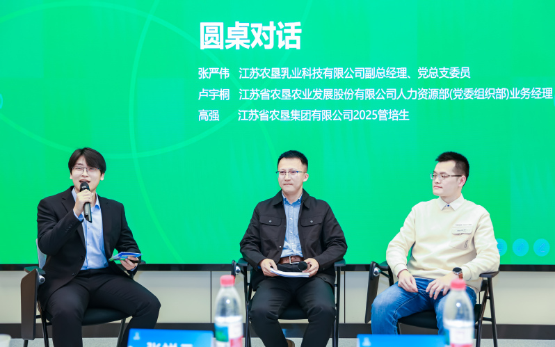 在“從校園人到農墾人”成長分享環節,南京農業大學校友代表蘇墾乳業副總經理張嚴偉、蘇墾農發人力資源部業務經理盧宇桐、集團公司2025屆管培生高強分別講述了他們在江蘇農墾的職業軌跡與心路歷程。張嚴偉更結合自己擔任面試官的經驗,向學弟學妹送出“自信、真誠、專業”六字面試秘籍,并鼓勵大家堅守農業人的理想與初心。