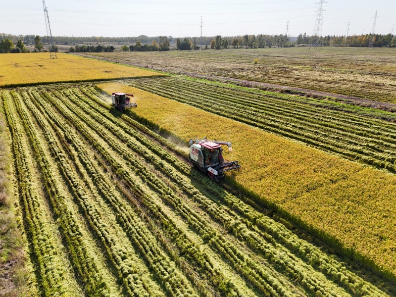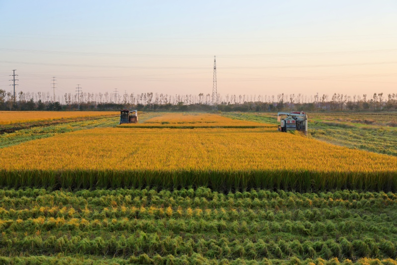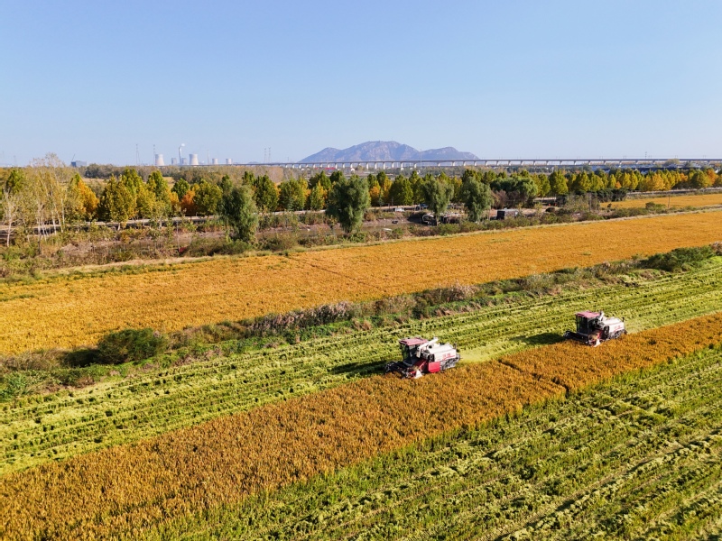 11月2日,在江蘇省連云港市海州區江蘇農墾崗埠農場的高標準農田里,職工們利用晴好天氣,積極開展水稻搶收工作,確保不誤農時、顆粒歸倉。