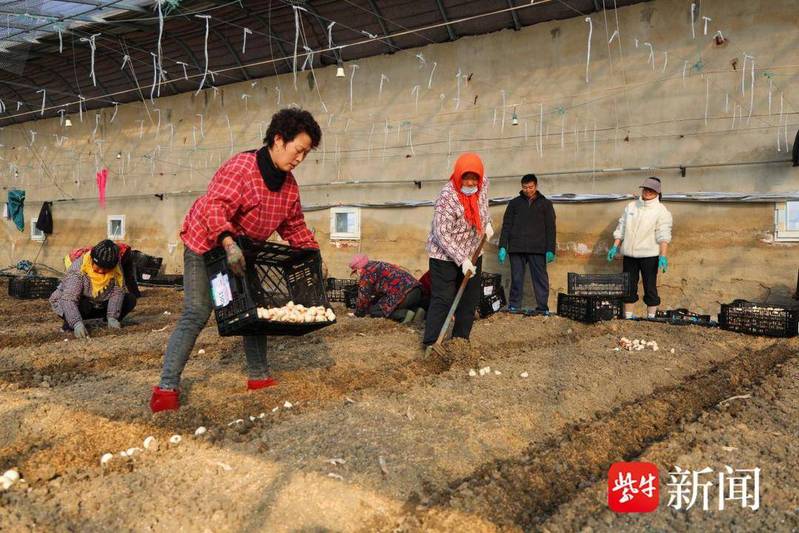 清晨,第一縷陽光穿透薄霧灑向連云港市海州區(qū)崗埠農(nóng)場高效農(nóng)業(yè)示范園,28號溫室大棚內(nèi)暖意融融,近20名工人分工協(xié)作,鋤溝、擺種球、栽種、培土……動作嫻熟、銜接緊密,一派熱火朝天的勞作景象,為今冬海州“美麗經(jīng)濟”續(xù)寫著增收新篇。