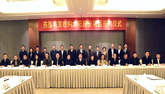 11月15日下午,蘇墾農(nóng)發(fā)股份公司在南京隆重舉辦收購太陽股份項目簽約儀式,集團(tuán)公司總經(jīng)理、蘇墾農(nóng)發(fā)股份公司董事長胡兆輝主持本次儀式并講話,集團(tuán)公司黨委委員、蘇墾農(nóng)發(fā)股份公司總裁蘇志富,太陽股份董事