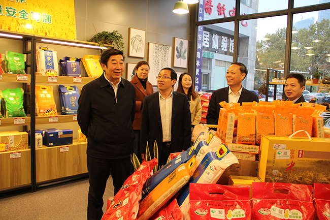 11月8日,集團公司總經理胡兆輝到蘇墾金橋公司調研指導工作。副總經理仲小兵、蘇墾農發總裁蘇志富以及集團公司資產經營部、蘇墾米業、蘇墾園藝負責人陪同調研。  胡兆輝一行先后考察了蘇墾生態農產品直銷中