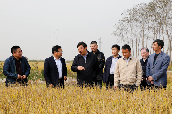 近日,省農(nóng)墾集團公司總經(jīng)理、蘇墾農(nóng)發(fā)股份有限公司董事長胡兆輝帶領(lǐng)相關(guān)部門負責人來東辛檢查、指導(dǎo)工作。在東辛農(nóng)場有限公司黨委書記、場長韓中書、蘇墾農(nóng)