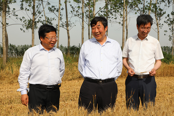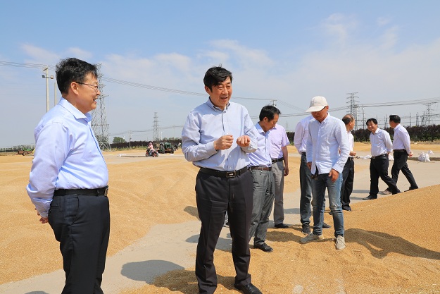 5月30日,集團公司黨委書記、董事長魏紅軍,總經理胡兆輝到蘇墾農發宿遷分公司調研,蘇墾農發公司總裁王立新參加調研。  在宿城基地程莊生產區21大隊麥田,魏紅軍看著豐收在望的麥田十分高興,在現場聽取