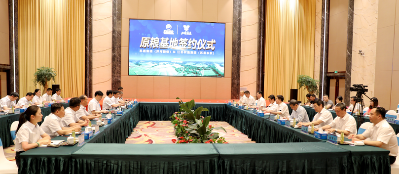5月29日,江蘇農墾(蘇墾農發)與蘇酒集團(洋河股份)原糧基地簽約儀式在洋河酒廠隆重舉行。集團公司黨委書記、董事長魏紅軍,總經理胡兆輝,蘇酒集團(洋河股份)黨委書記、董事長王耀,蘇酒集團(洋河股份