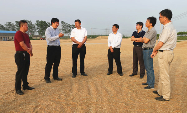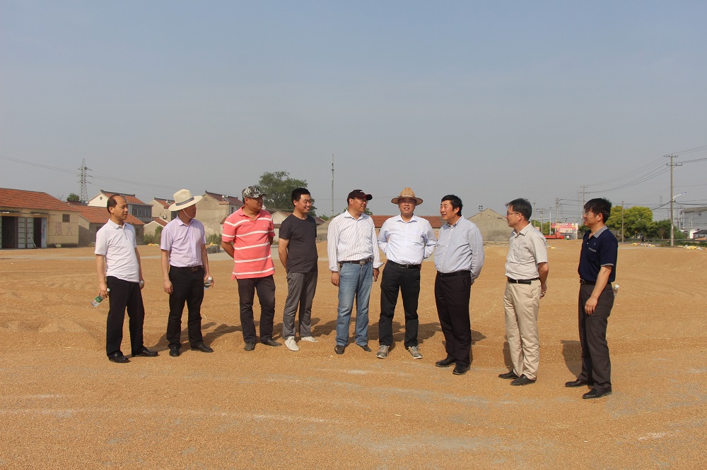 6月14日下午,集團公司總經理、蘇墾農發董事長胡兆輝一行到濱淮檢查指導三夏工作。濱淮領導班子李德利、傅龍光、李文忠、馬傳武、鄧權才、劉雄飛等陪同檢查。  在濱淮分公司二生產區五大隊場頭,李德利匯報