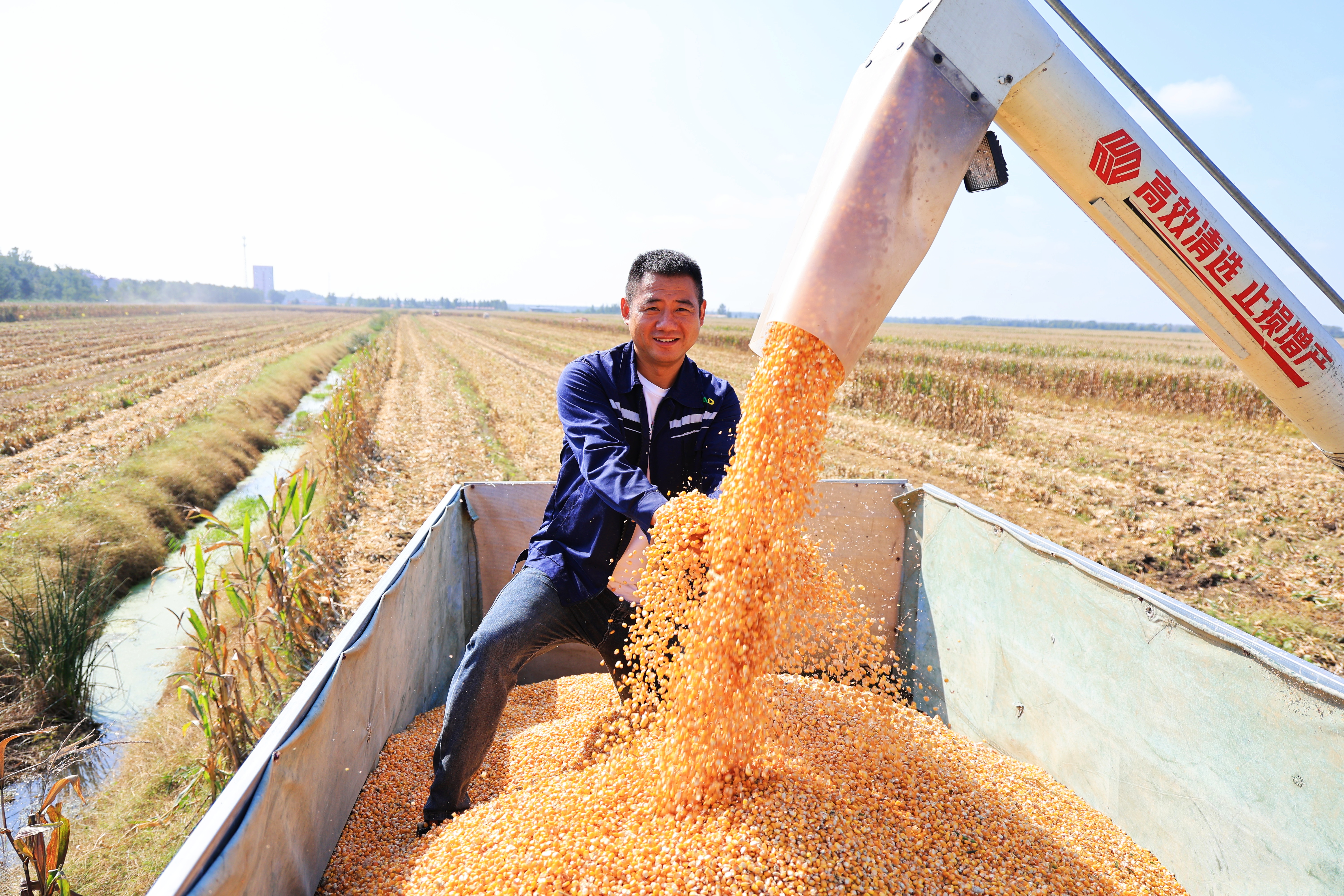 金秋十月,崗埠農場迎來了一年中最繁忙的時節。10月9日,10余臺大型收割機在王溝生產區馬莊隊的玉米大豆田間來回穿梭,金黃的玉米與飽滿的大豆在機械的轟鳴聲中完成收獲,田間地頭呈現出一派熱火朝天的豐收景象。 走進崗埠農場的玉米大豆帶狀復合種植區,只見聯合收割機、運輸車等100余臺農業機械有序作業。在陽光的照耀下,一株株玉米稈被機械巨口吞下,變成了金色的玉米粒傾瀉到運輸車上;大豆莢則通過脫粒裝置分離出圓潤的豆粒,秸稈被粉碎還田,為小麥播種積蓄養分。 據悉,崗埠農場今年共種植1.5萬畝玉米大豆復合田,玉米大豆帶狀復合種植通過高矮作物搭配、邊行優勢利用,實現“玉米不減產、多收一季豆”?!敖衲晔菎彶哼B續第4年推廣玉米大豆帶狀復合種植模式,既提高了土地利用率,又實現了‘一地雙收’?!痹诂F場,農業中心負責人包加站在田埂上介紹道。為應對近期復雜多變的天氣,崗埠提前調度機械,按照“成熟一塊、收獲一塊”的原則分片作業。“我們9點露水散去開始收割工作,到傍晚時分停止作業,確保糧食及時歸倉。你看,這玉米多么飽滿,顏色非常正?!蓖鯗仙a區馬莊隊管理員望著金色的玉米粒,露出了喜悅的笑容。田間,玉米、大豆收割機分片作