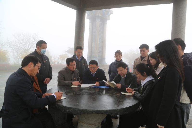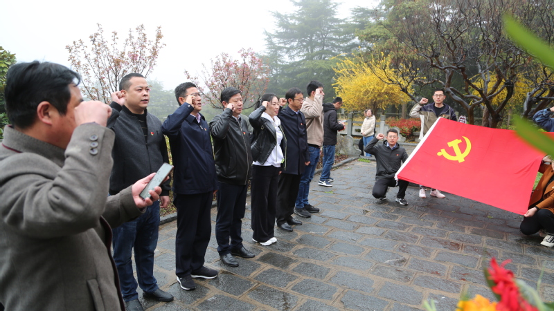 在八路軍著名抗日將領(lǐng)符竹庭墓前,大家在志愿者的介紹中了解符竹庭將軍戎馬一生、為國(guó)為民的光輝事跡。隨后,一行人莊嚴(yán)肅穆,全體默哀1分鐘,以表達(dá)對(duì)革命先烈最崇高的敬意和最深刻的懷念。支部黨員為革命英烈敬獻(xiàn)花籃,全體黨員向紀(jì)念碑三鞠躬,并面向黨旗重溫入黨誓詞。