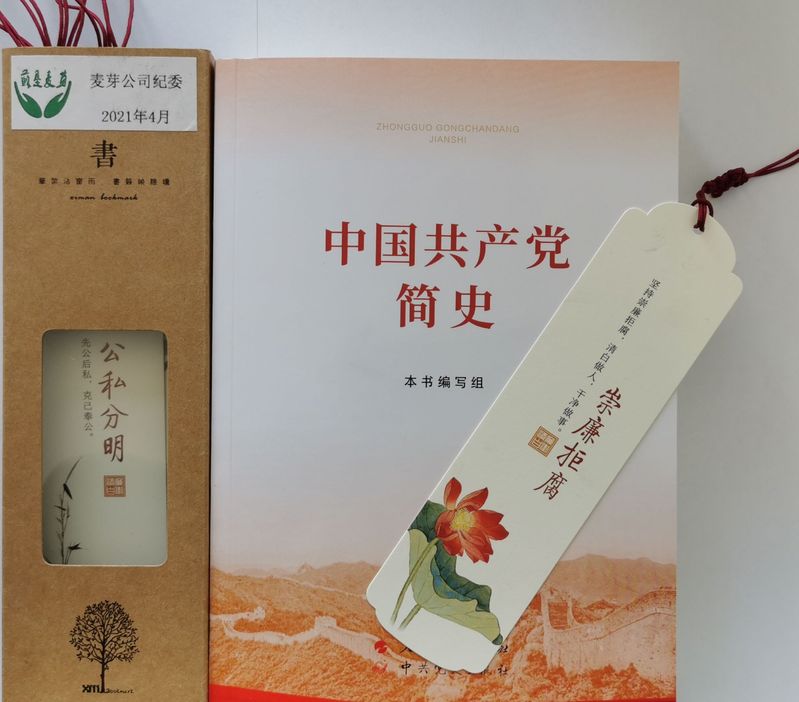 日前,麥芽紀委在公司黨委為廣大黨員干部發送黨史學習教育指定書目之際,伴隨送去了一份特別的禮物一套“廉政書簽”。
