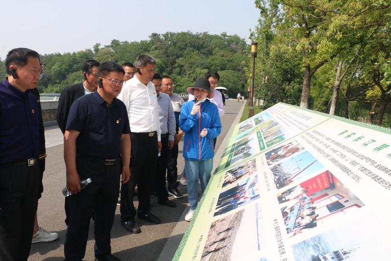 黨委書記滕金平等一行沿著總書記的足跡來(lái)到南通市五山地區(qū)濱江片區(qū),沿江邊步行看了濱江生態(tài)環(huán)境保護(hù)情況。并通過(guò)展板和講解員介紹了解了當(dāng)?shù)赝七M(jìn)長(zhǎng)江岸線環(huán)境綜合治理、實(shí)施長(zhǎng)江水域禁捕退捕等情況。