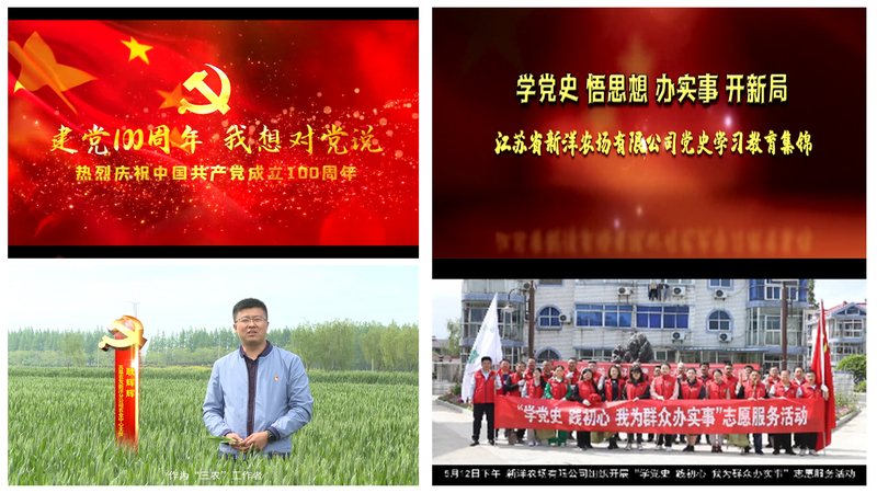 為慶祝中國共產黨成立100周年,向黨的百年華誕獻禮,5月上旬,新洋農場有限公司拍攝制作以“學黨史 悟思想 辦實事 開新局”為主題的微視頻,其中《黨史學習教育視頻集錦》、《建黨100周年 ,我想對黨說》等微欄目在農場公司微信公眾號、電視、電子顯示屏等媒介滾動播放,營造了濃厚的學史氛圍。