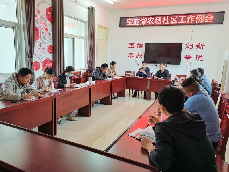 517日,寶應湖農場社區管理委員會召開周例會,社區全體員工參會。會議對當前重點、難點工作完成情況、存在困難、工作措施等進行了梳理通報,要求所有與會人員全身心投入、全方位跟進、全力量攻堅,促進社區工作有目標、有計劃、有落實、有跟蹤、有考核,凝心聚力共建平安、健康、和諧、幸福社區。